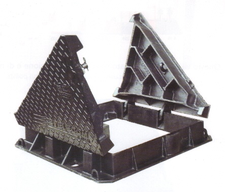 CHIUSINO GHISA MODELLO 60X60 D 400 Con due coperchi triangolari cerniere contrapposte e serratura inox |